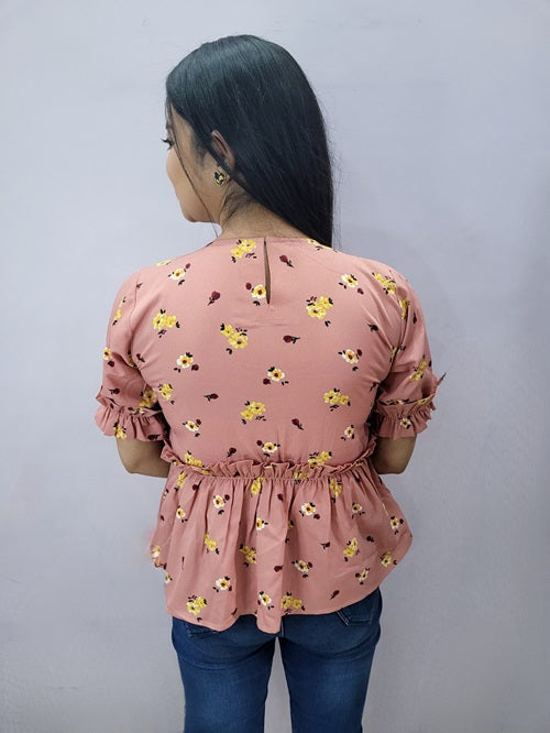 Peach Small Floral Peplum Top