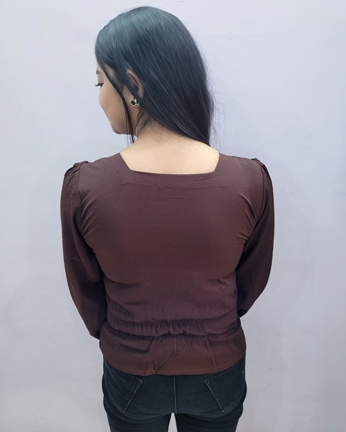 Brown Puff Sleeves Top