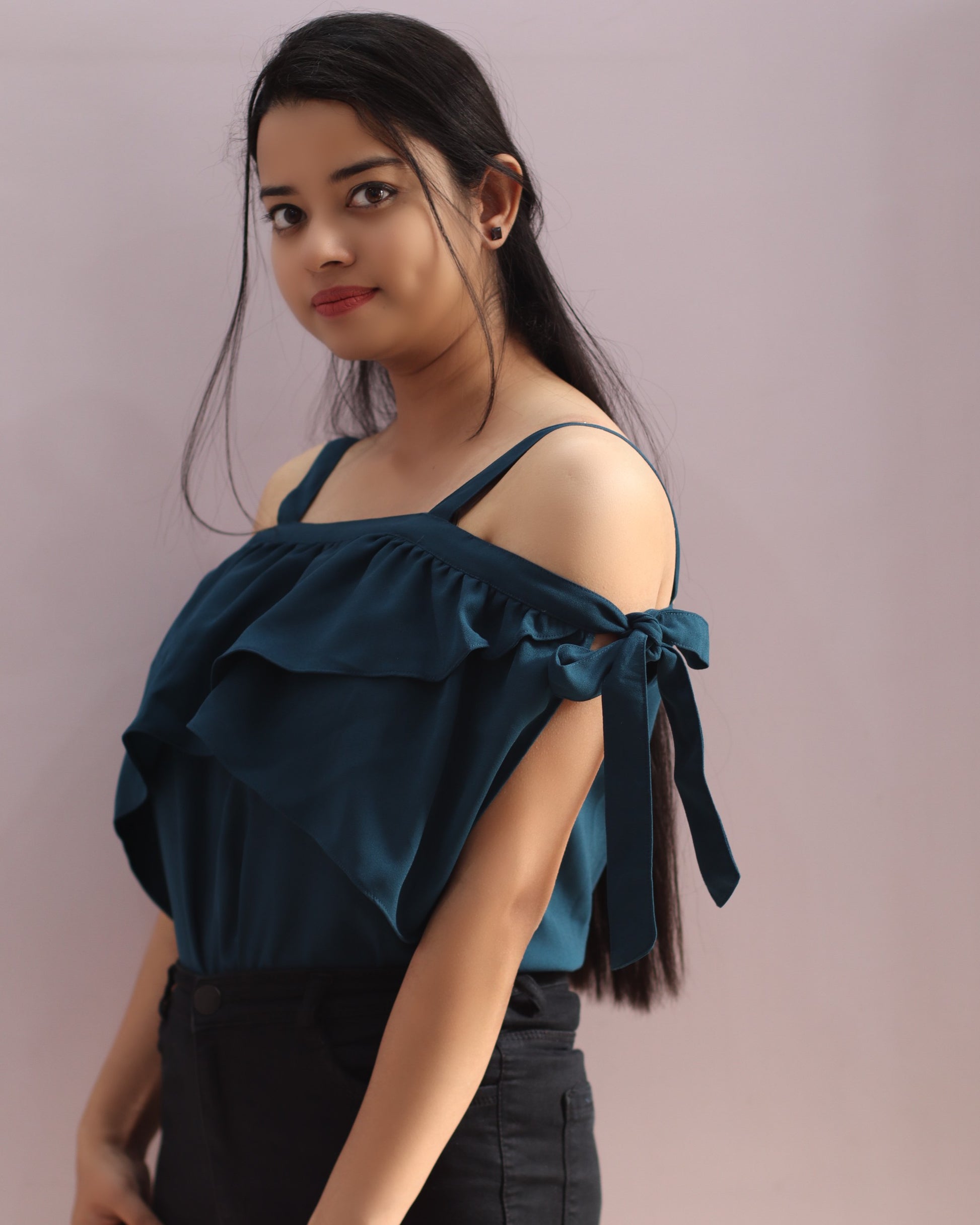 • Face Shape: The cold shoulder neckline with layered ruffles flatters oval, heart, and round face shapes, drawing attention upwards and elongating the neck.