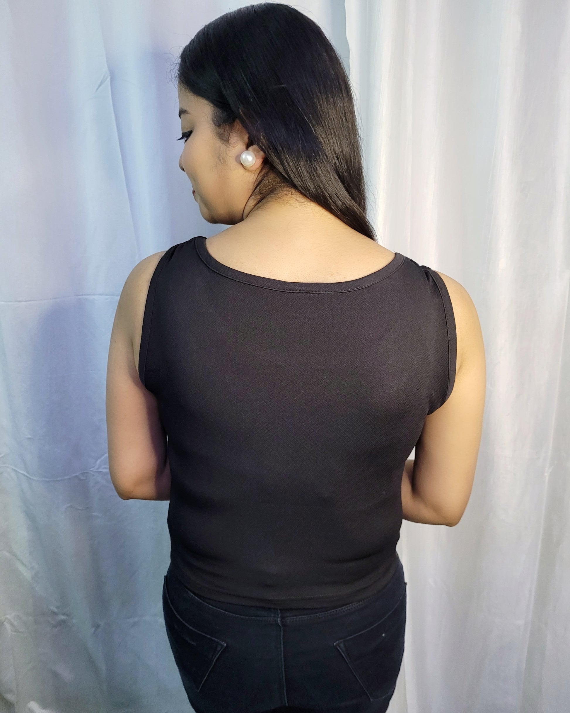 Pair this cute crop top with high-waisted black or dark wash blue denim straight legged jeans to get a sleek and balanced look.