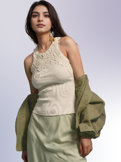 Pair this cute tank top with high-waisted contrast trouser like black, or beige for a chic or polished look or choose high waisted jeans or shorts.